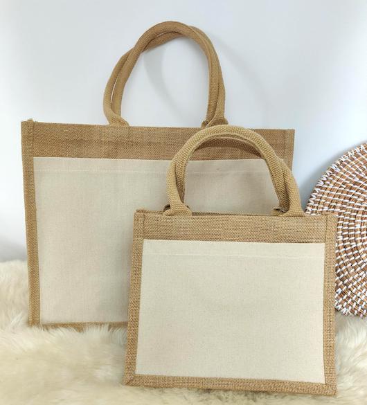 Sac en jute avec une poche sur le devant en coton écru.
